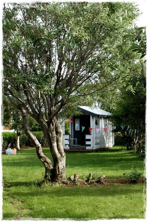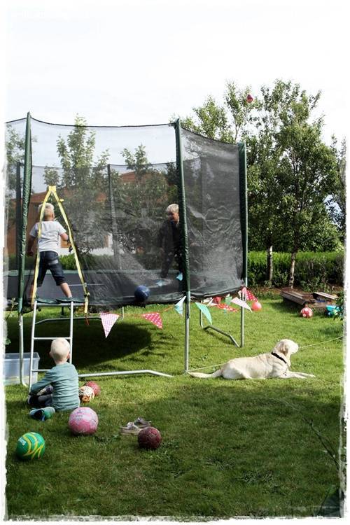 …en krakkarnir voru mest í garðinum, og eiginlega bara helst á trampólíninum…