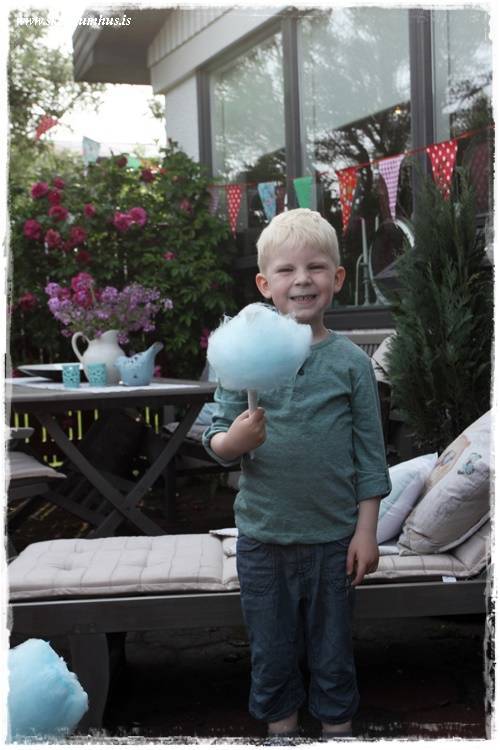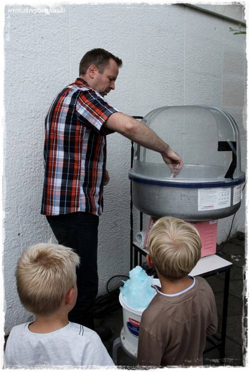 Ójá, fyrr í vetur var Aha.is með tilboð á leigu á candyfloss-græju og ég keypti svoleiðis. Þetta varð þvílíka gleðin og snilldin. Krakkarnir eeeeeelskuðu þetta og svei mér ef nokkrir fullorðnir nældu sér ekki líka í 🙂