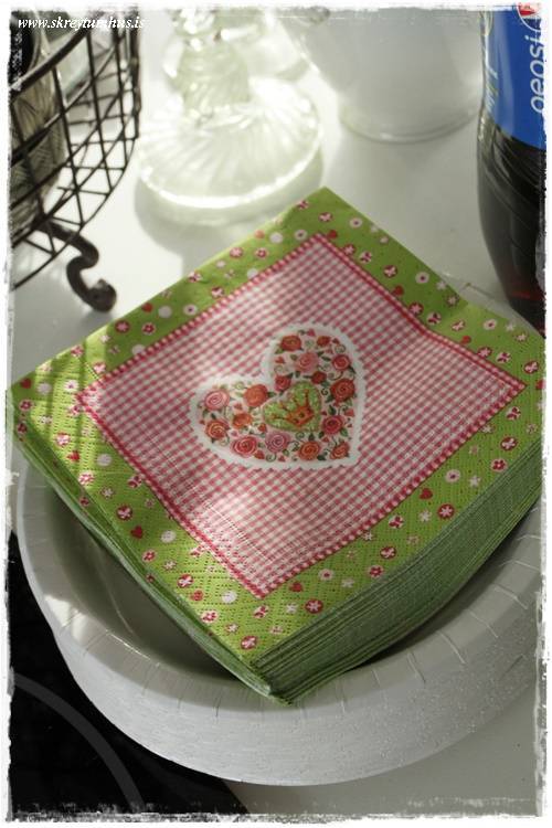 …hrikalega sætar servéttur úr Rúmfó – þær eru bara sumar og gleði – og pappadiskar (sem var sniðugasta hugmyndin fyrir rúmlega 40manns í mat!!)…