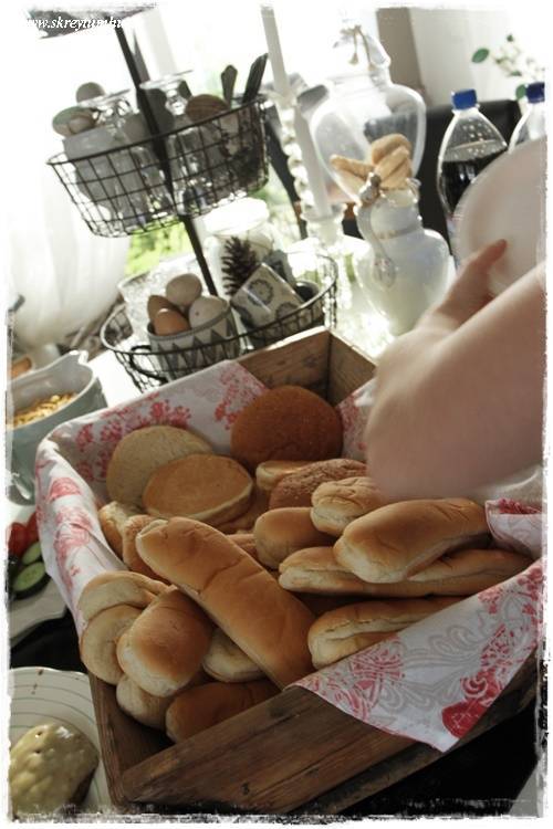 …gamla trogið fékk fallegt viskustykki í sig og var fyllt af brauði…