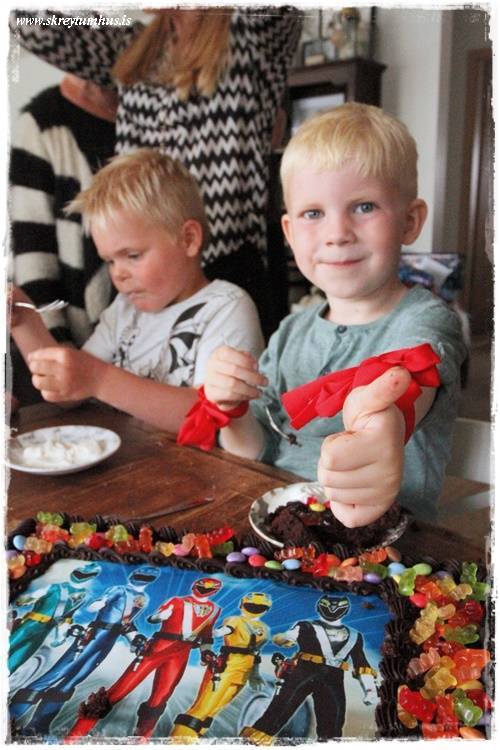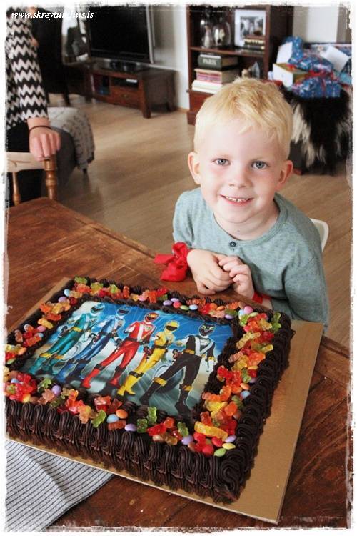 …en drengir verða líka að fá köku, og þar sem þetta var ákveðið kvöldinu áður var lítill sem enginn tími til þess að redda sér. Ég hringdi því samdægurs í Bakarameistarann og sendi myndina af Power Rangers í tölvupósti á þá, og þeir redduðu mér alveg!
