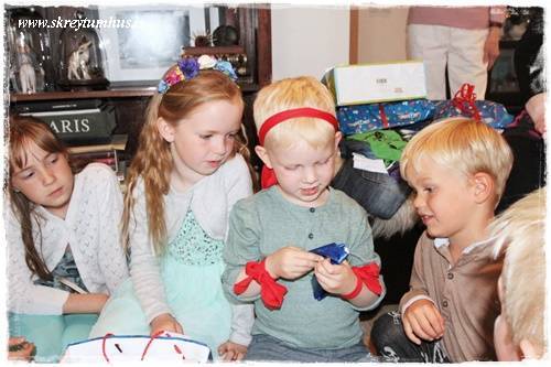 …ég fékk smá samviskubit að hafa ekki gert svona stórt skreytiborð – eins og ég er vön. En ég er nokk viss um að það kom ekki að sök, því að þessi litli maður var svo sæll með daginn sinn og allt sem að honum kom.