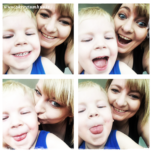 Þá tosar sá litli mömmu til sín, tekur utan um hálsinn og knúsar og segir: Svona svona mamma mín, þetta er allt í lagi. Þetta er bara mynd!