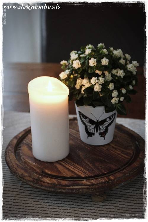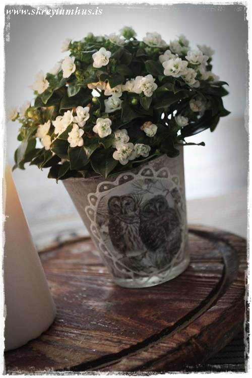 …og það er einmitt svo skemmtilegt – þá er hægt að nota alls konar krúttleg kertaglös sem pottahlífar…