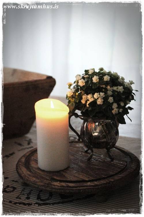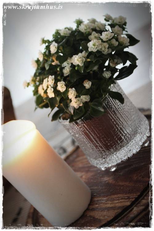 …skellti blóminu líka í litla silfurkönnu…