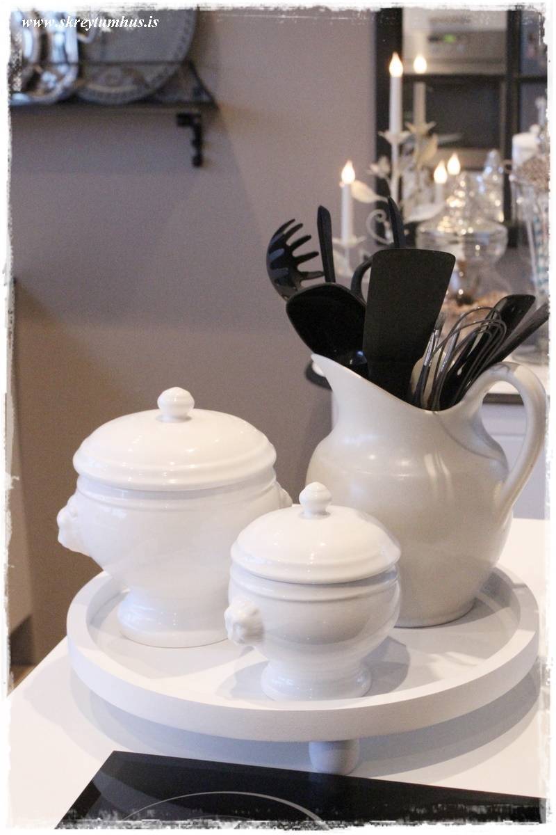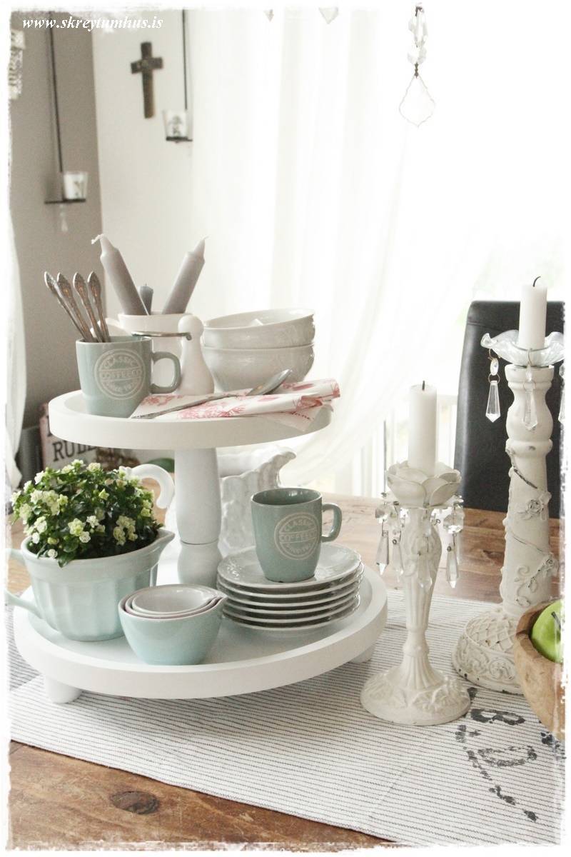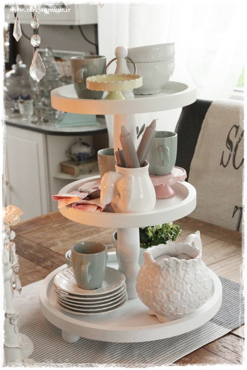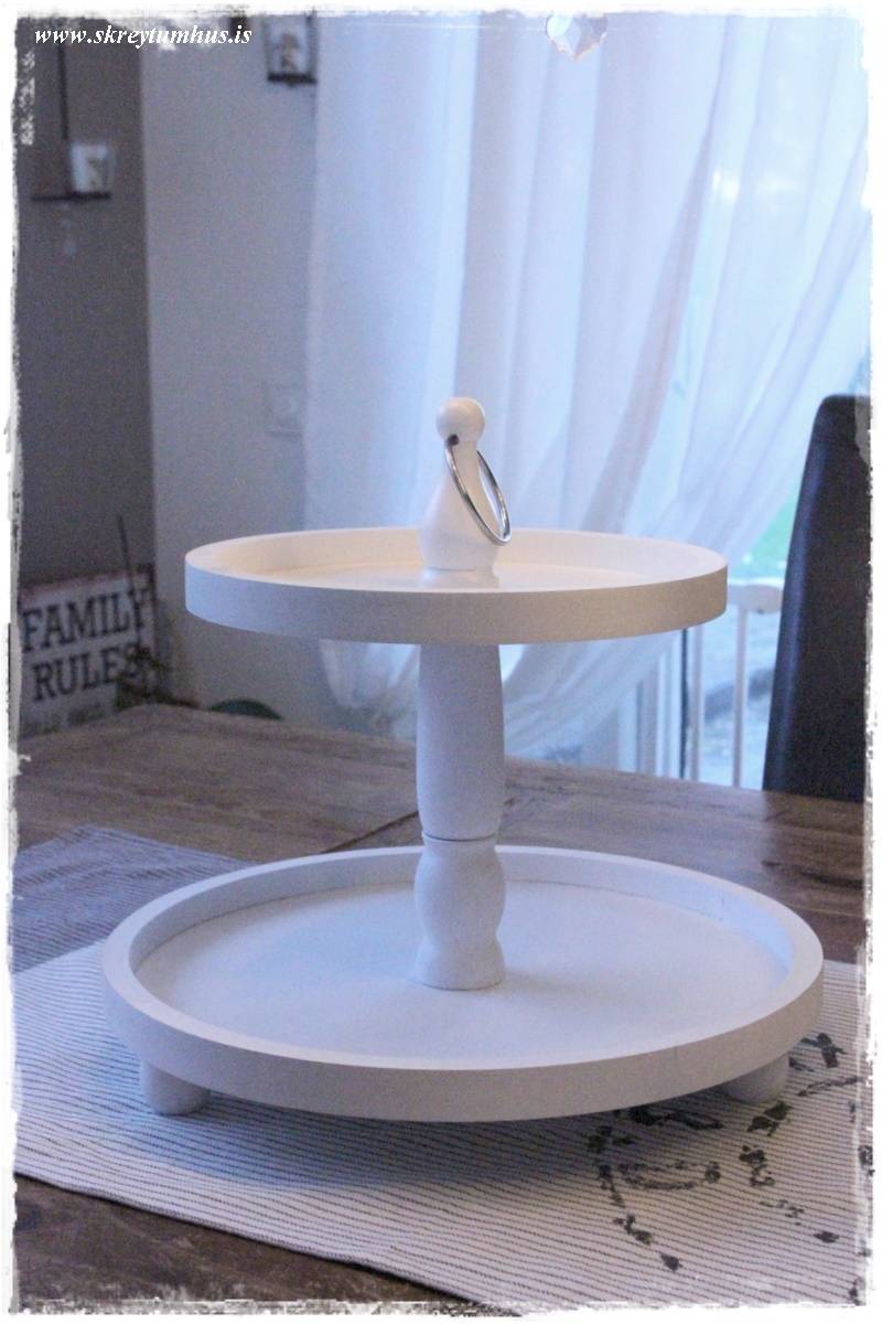 …ég var búin að vera með alls konar pælingar og ráðstafanir um að panta bakka frá Ameríkunni sem átti að kosta um $100 plús og er núna bara alsæl með Rúmfó bakkann minn góða – á þremur hæðum sko!