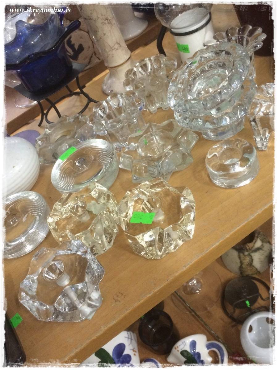 …og nóg til af alls konar, sérstaklega finnst mér þessi framarlega í neðri hillunni flottur – gæti orðið fyrirtaksfótur á kökudisk…