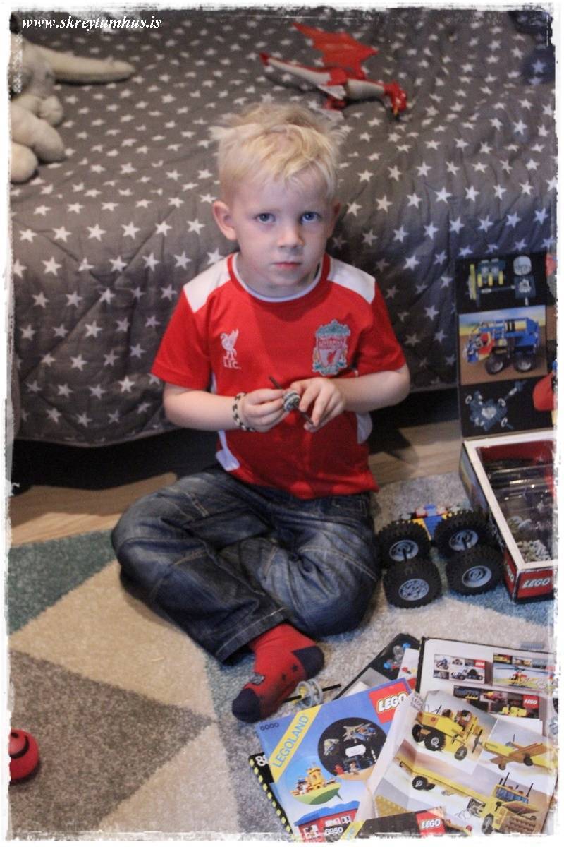 …það hljóp nefnilega heldur betur á snærið hjá mínum manni núna um daginn. Hann kom í heimsókn til ömmu sinnar og afa og fékk þessa stóru kassa úr bílskúrnum, sem koma frá pabba hans. Það þýðir væntanlega að þessir kassar eru ca30 ára gamlir – svona getur fólk verið passasamt og hann græddi á því…