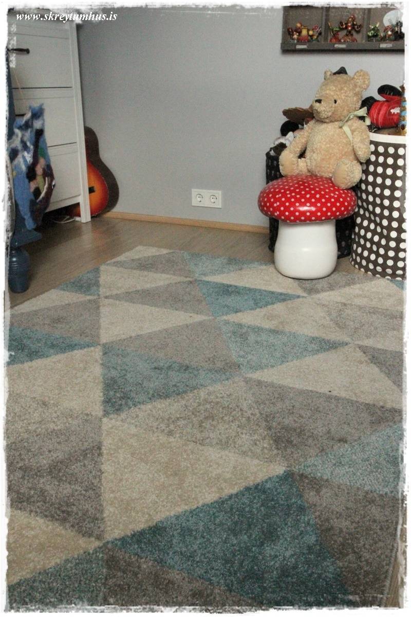 Ekki það að litli maðurinn er svo sem ósköp þægur, en ég er búin að vera lengi að leita eftir mottu á gólfið hjá honum. Aðallega vegna þess að ég sé hvað þau leita í að vera á mottunni inni í herberginu hjá dömunni og mér fannst sjálfsagt að hann fengi svona þægindi líka. Ég er búin að vera með mottu í huga sem ég sá í Rúmfó í fyrrasumar, en hún kláraðist áður en ég náði að klára að hugsa mig um…