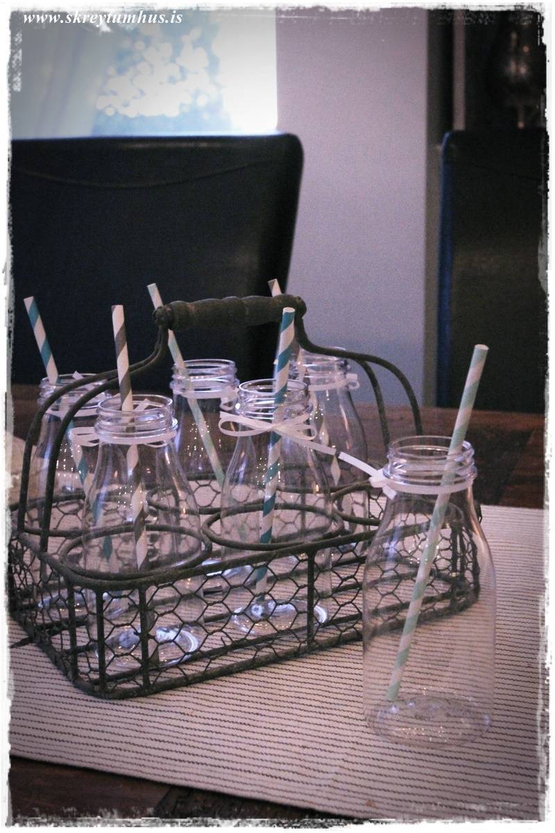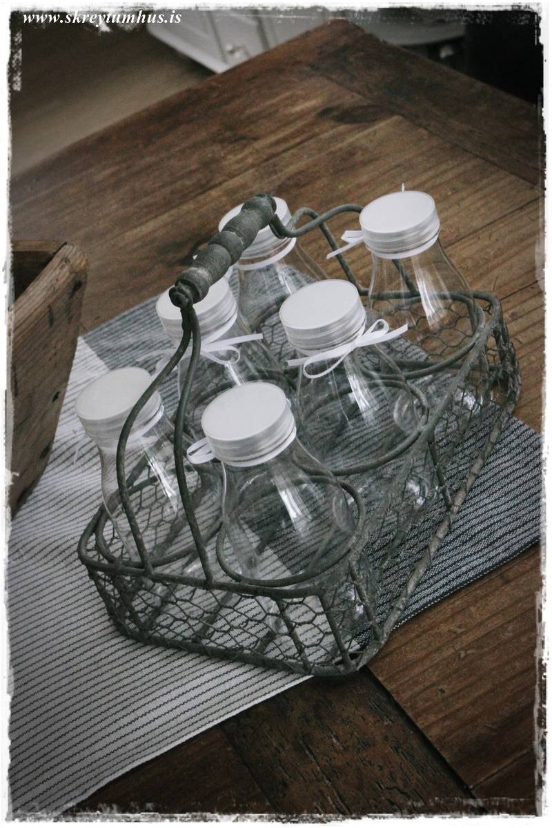 …að sama skapi fann ég þessa hérna yndisgrind, og ég setti sætu flöskurnar sem ég keypti í Litlu Garðbúðinni, endur fyrir löngu, ofan í hana…