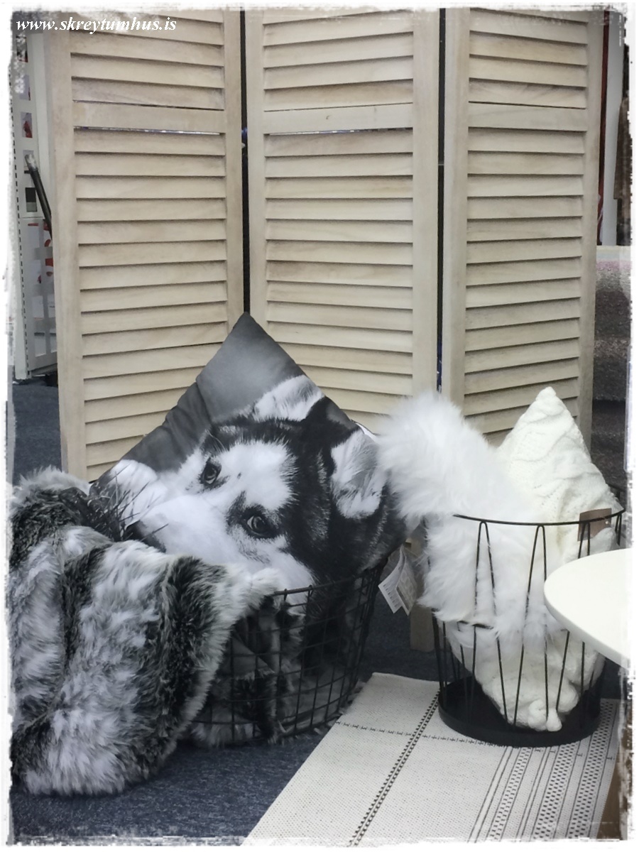 …nýja uppáhalds skilrúmið mitt fékk að vera með, og svo flottar vírkörfur í mismunandi stærðum – sem taka aukapúðana…
