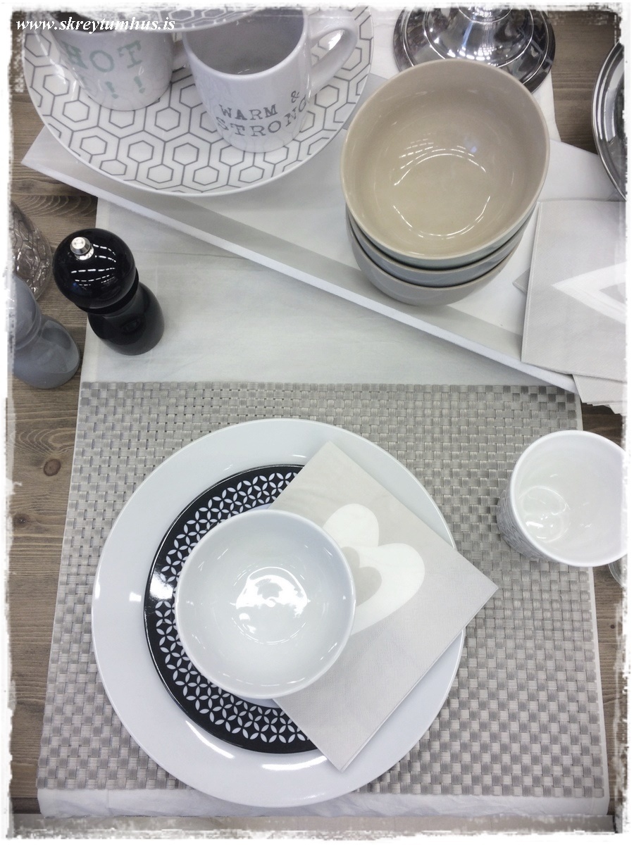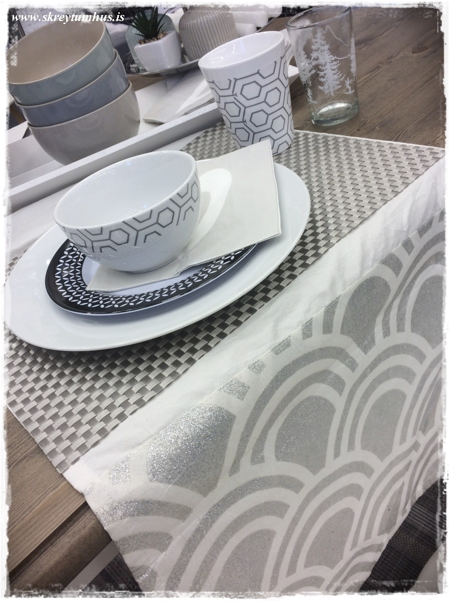 …og ofan á löberana setti ég diskamottur – hey það er bara um að gera að hlaða þessu sko, þegar maður hefur heila búð að raða úr 🙂