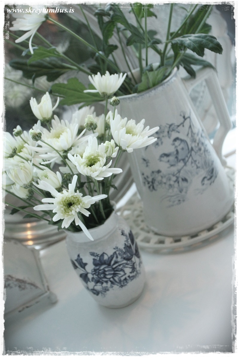 Þegar þið kaupið ykkur blóm þá er snilld að kaupa krusana/chrysurnar – þeir standa alveg ótrúlega lengi. Síðan má taka minni greinarnar og skella í litla vasa, eins og hér!