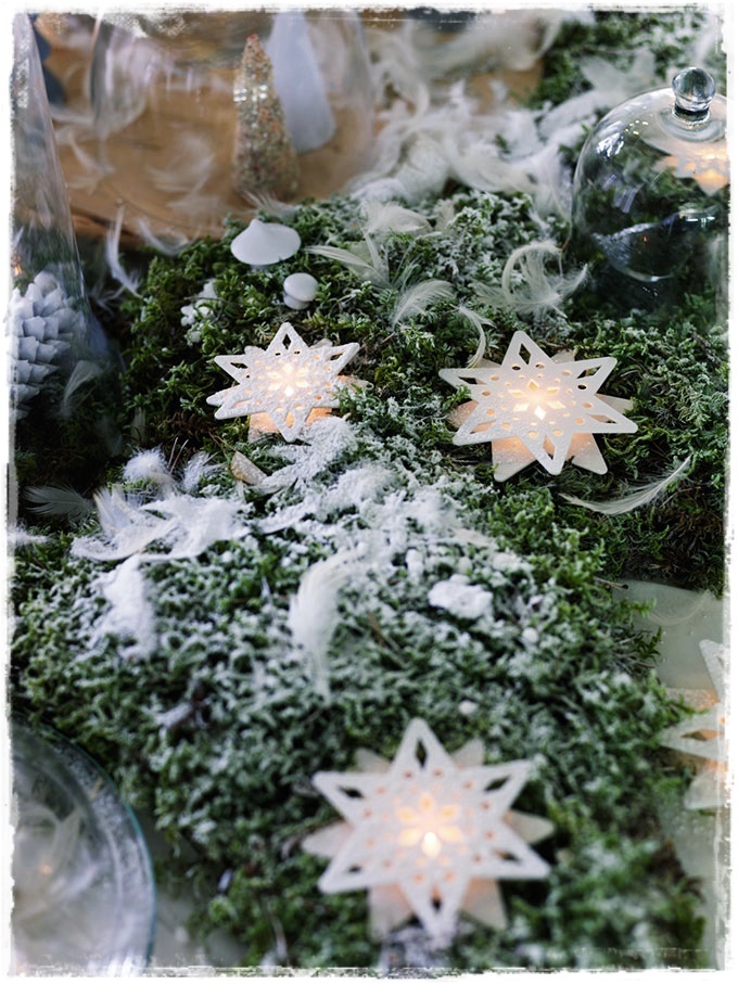 …koma svo, mosi, hvít ljós, fjaðrir og gervisnjór. Ég sé meira segja glitta í smá köngla – ætli sá sænski lesi bloggið mitt?