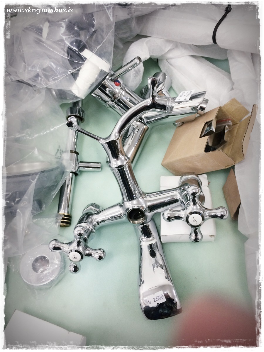 …allt fullt af nýjum blöndunartækjum, ansi hreint retró og fallegum, og allt nýtt úr kassanum – eða enn í kassanum…