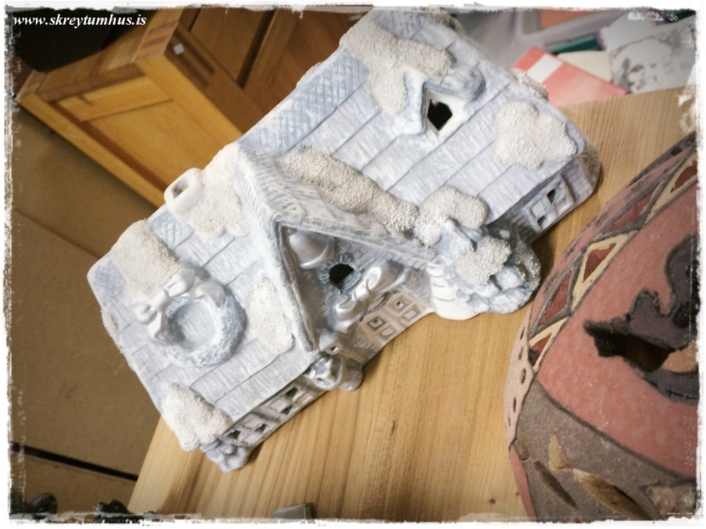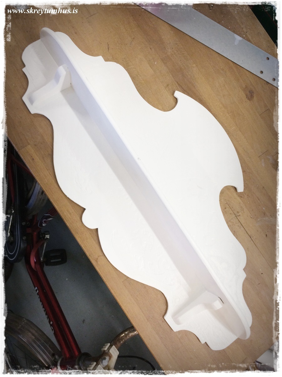 …þetta borð yrði æðislegt eftir meikóver – t.d. bara að setja fullt af fallegum ljósmyndum undir glerið, eða jólakúlum, eða fallegum pappír eða flottum bókum – og kostaði 2000kr…