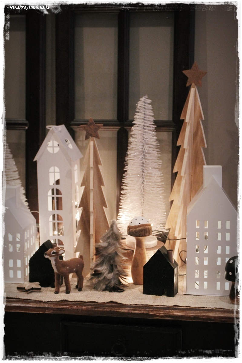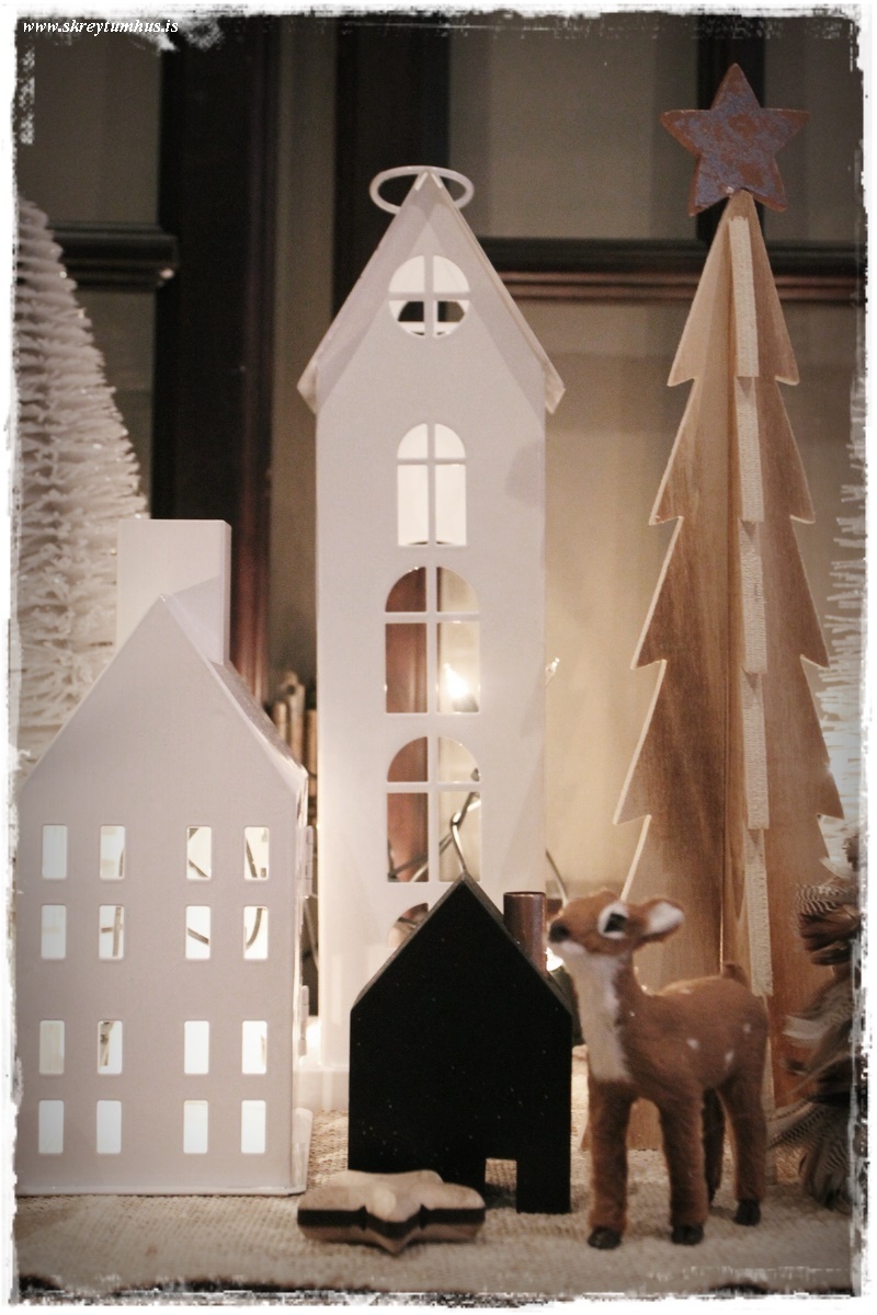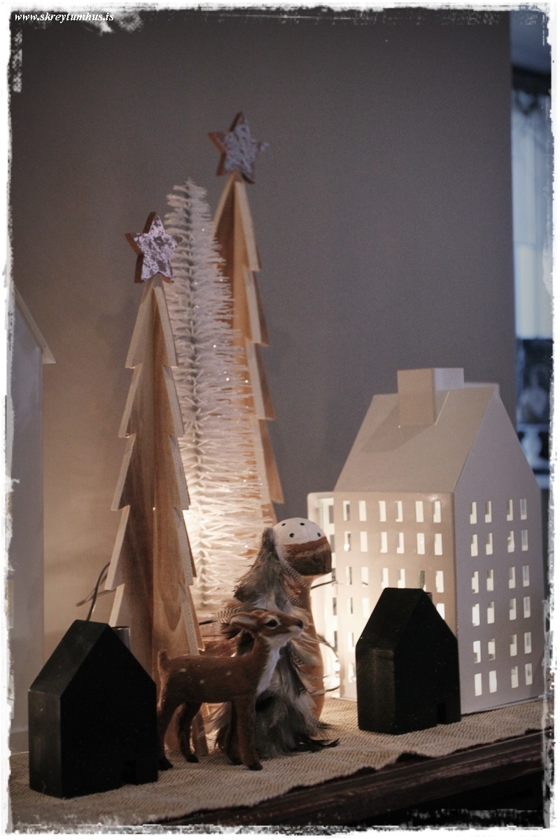 …ég ákvað setja upp smá svona “jólaþorp” með Bauhaus-dótinu (innlit í þessum pósti). Þegar ég var að raða komu krakkarnir fram úr herbergi, þar sem þau voru að leika. Litli kallinn snarbremsaði “vóóóó, eru bara komin jól?” Síðan kom litla míni-gelgjan mín “mamma, getum við kannski aaaaaaðeins beðið með jólin” 🙂