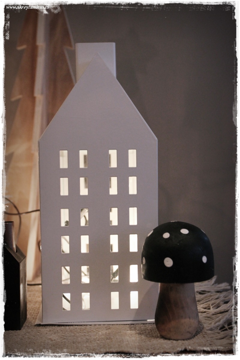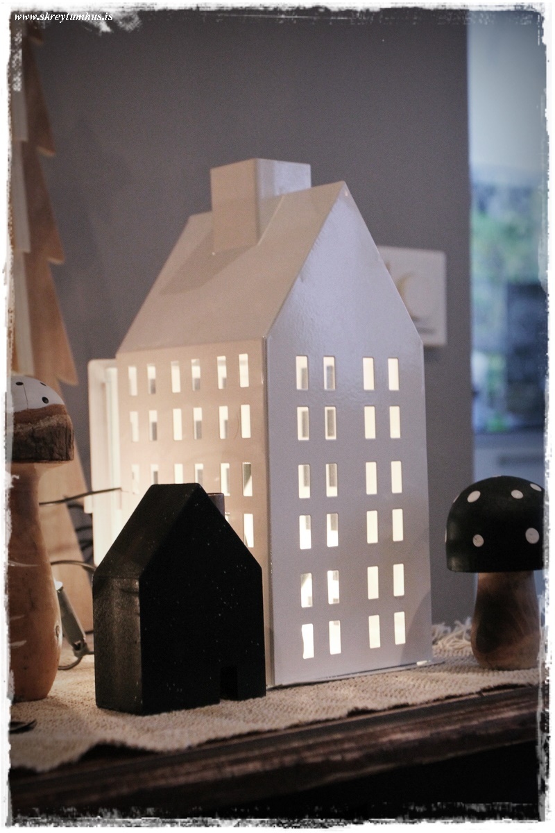 …þrátt fyrir að svona hús séu fyrir kerti, þá er alltaf skemmtilegt að þræða seríur innan í þau, þá ná þau að njóta sín allan tímann – ekki bara þegar kveikt er á kertum…