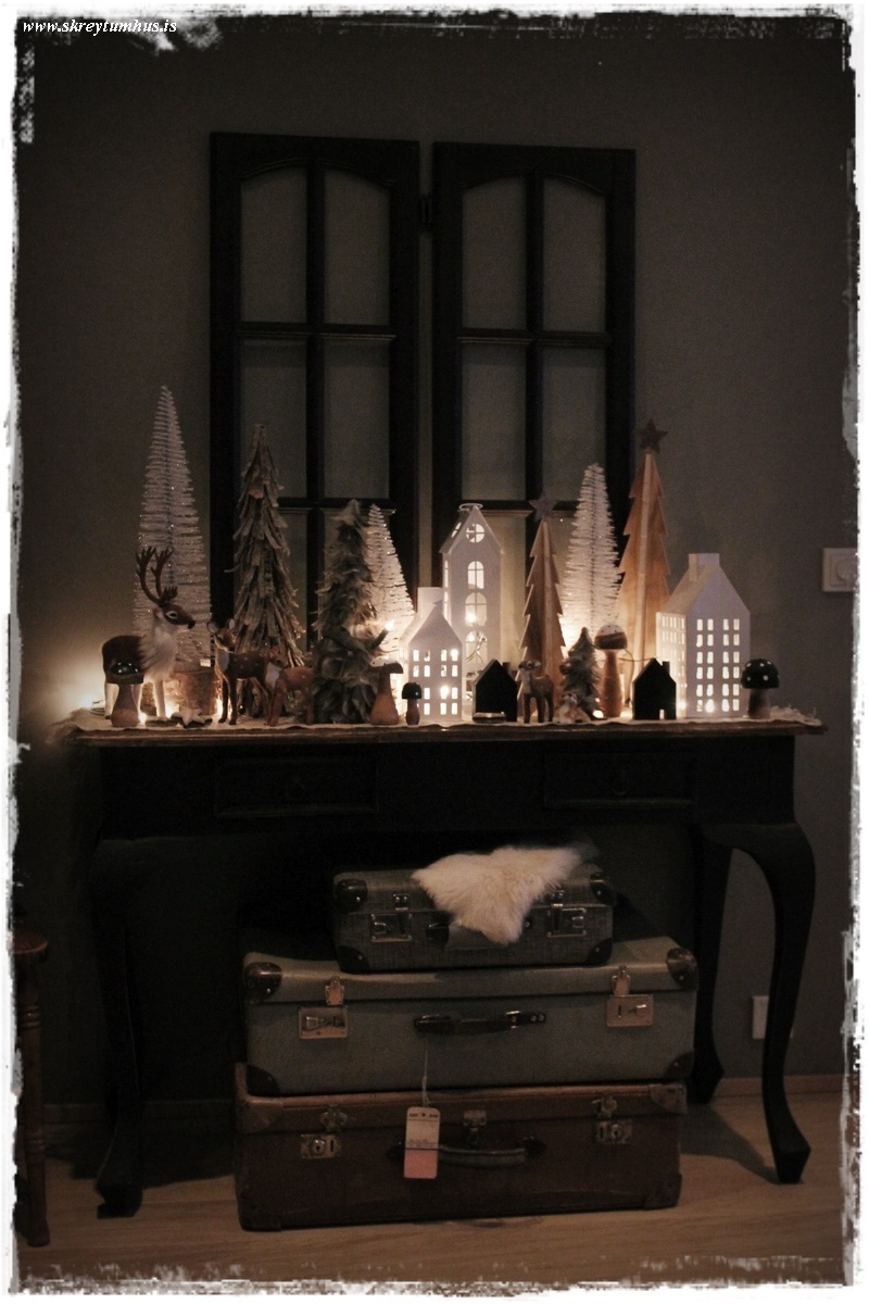 …svo þegar maður er að raða svona á borð, þá skiptir töluverðu máli að ná mismunandi hæðum í skreytinguna, eins og þið t.d. þá er tréð hægra megin á svona upphækkun, eins og ég sýndi í póstinum í morgun…
