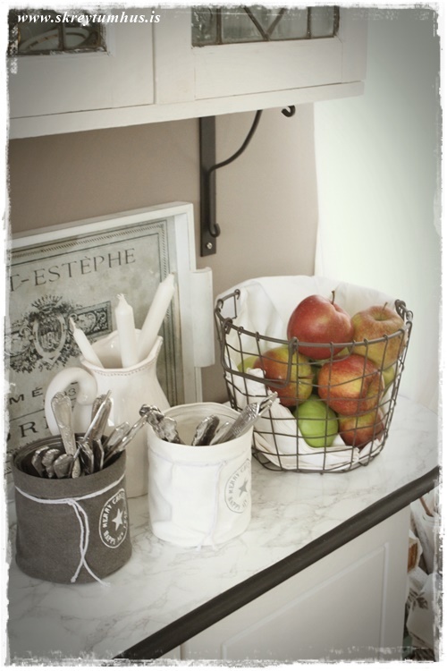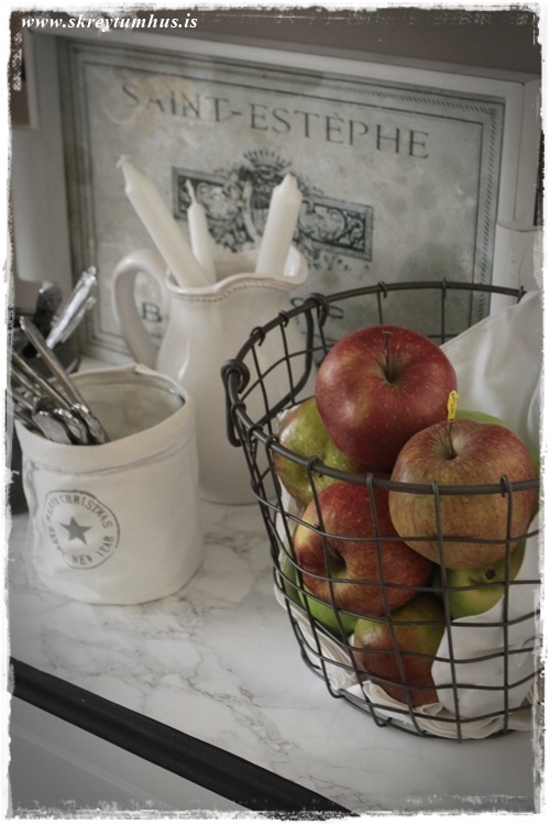 …en mér fannst viðeigandi að setja eplin í hana núna…