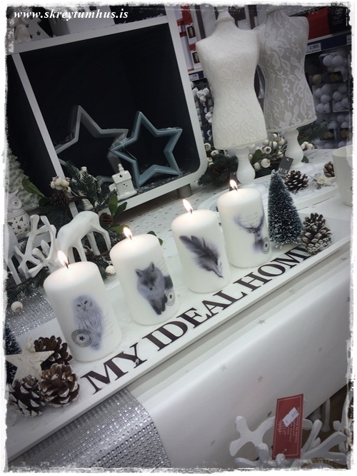 …skellti líka límmiðum á bakkann, skemmtilegt að leika sér með þetta – og þessi kerti sko…