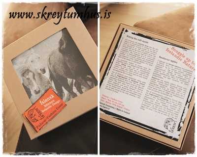 * Það er mikið lagt upp úr vönduðum umbúðum, sem gerir vöruna skemmtilega til gjafa.  Það er texti um myndefni hverrar gerðar á íslensku og ensku,  Upphaflega var þetta hugsað fyrir þarfir ferðamanna.  En Íslendingar eru að kaupa vörunar þeirra til gjafa og þá einnig til að senda til vina og ættingja í útlöndum.