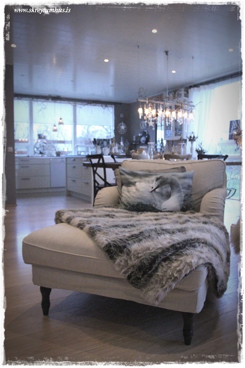 …og svo er líka alveg upplagt að kúra sér í þessum sófa, með loðna, hlýja dásemdarteppið mitt – sem hefur ekki verið vanþörf á undanfarið – og glápa bara í kringum sig, eða lesa í bók eða blaði…