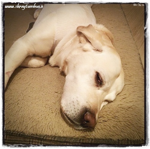 …við erum því vongóð, en vá hvað maður verður hræddur og stressaður.  Sérstaklega þar sem við erum alls ekki búin að jafna okkur á að missa hann Raffa, og manni finnst Stormurinn vera eitthvað svo mikill hvolpur.  Honum hefur nánast aldrei orðið misdægurt og er bara svo mikill “stormur” að þetta kom alveg eins og þruma úr heiðskýru lofti…