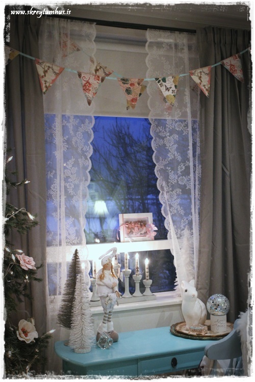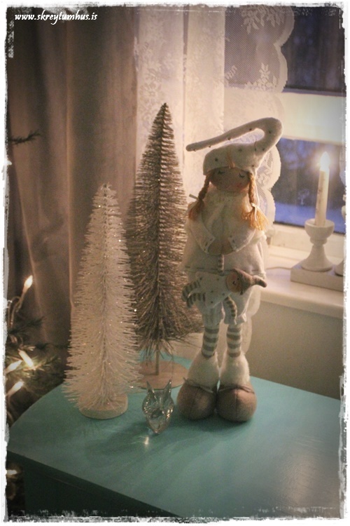 …í glugganum stendur aðventuljósið sem ég bjó til handa henni í fyrra (sjá hér)…