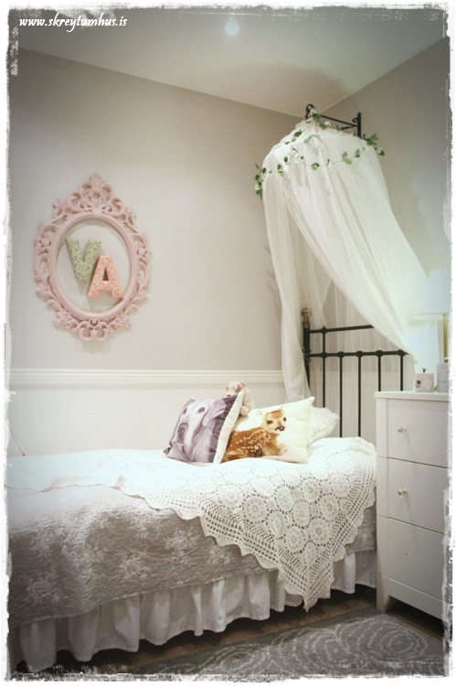…blúnduteppið fékk að flytja yfir svona tímabundið – en rúmteppið undir kemur frá Rúmfó…