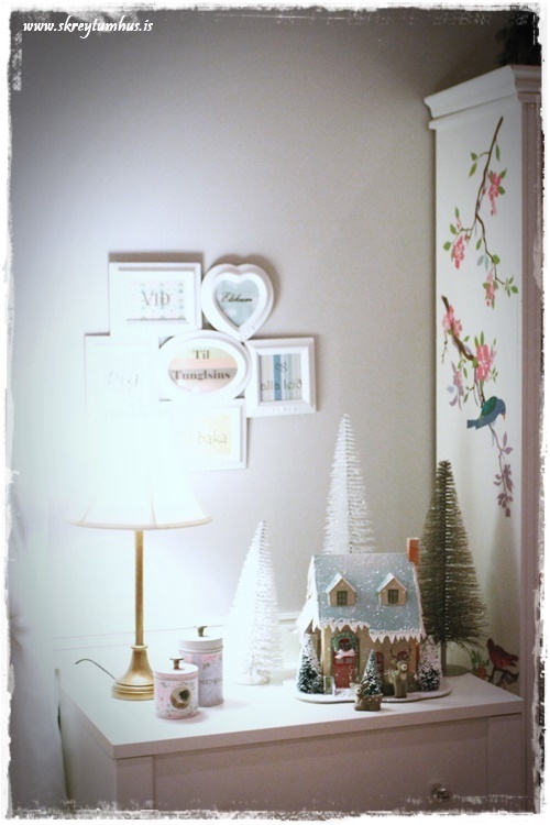 …nema jú á náttbiorðinu, þar stendur jólahúsið hennar ásamt trjám…