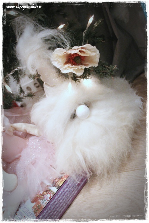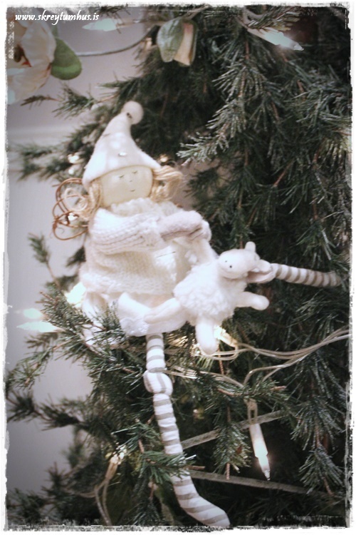 …og nokkur silkiblóm úr Rúmfó með. Undir trénu situr einn svona krúttsveinn, sem ég fékk á fallegu búðinni sem ég sýndi ykkur um daginn (sjá hér)…