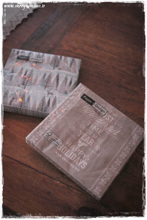 Ég tók tvær mismunandi tegundir af servéttum og blandaði þeim saman, mér finnst oft svo gaman að sjá ólíkar servéttur sem eiga samt litatóna sameiginlega og tala þannig saman…