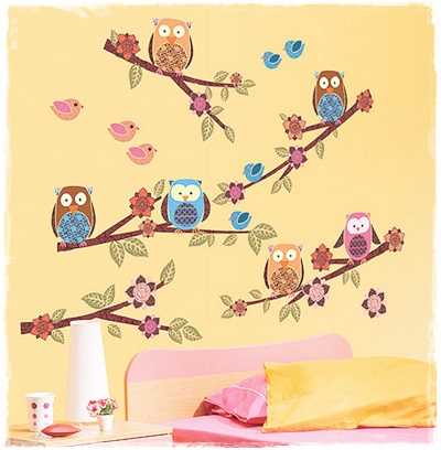 …vegglímmiðar, með (r)uglum…