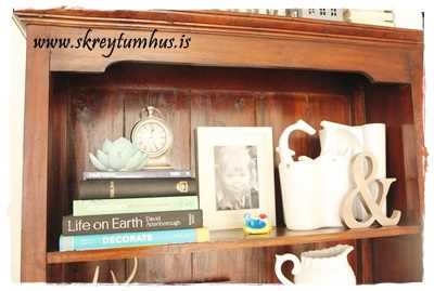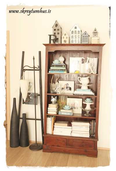En ég hef gaman af því að prufa þetta um stund – og hvers vegna ekki að leika sér aðeins með innstokksmunina sína, það kostar þig ekkert nema tíma og heilabrot um það hvar eigi að setja hitt og þetta. Byrjum á hillunni, þið vitið þessari sem fór úr stofunni á staðinn sem að hliðarborðið var á áður (þið vitið, það sem er núna þar sem arininn er og…….æji þið sjáið þetta bara)…