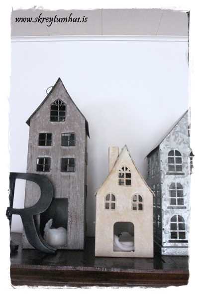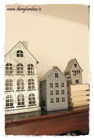 …ofan á hillunni er síðan risið þorp órólegu konunnar. Þið hefðuð bara átt að sjá gleðisvipinn á bóndanum þegar að hann kom heim og ég var búin að færa allt nema stóra glerskápinn, hann var alveg bara: YYYEEEEESSSSSS 😀