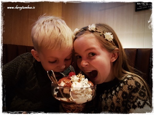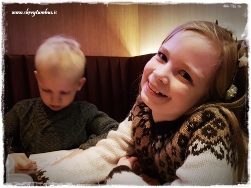 …og enn glaðari að vera samferða stóru systur, sem er orðin þrælvön svona skólajólastemmingu.