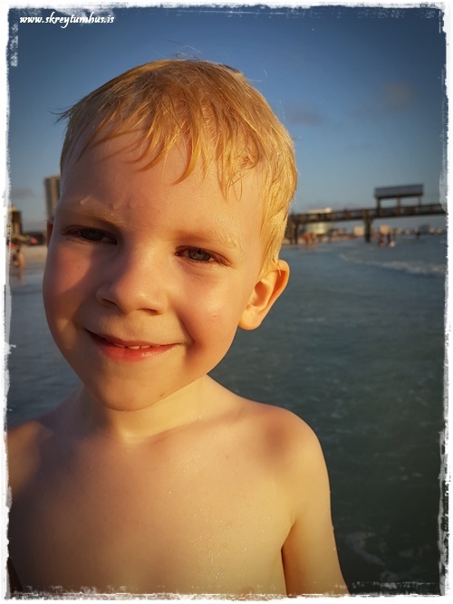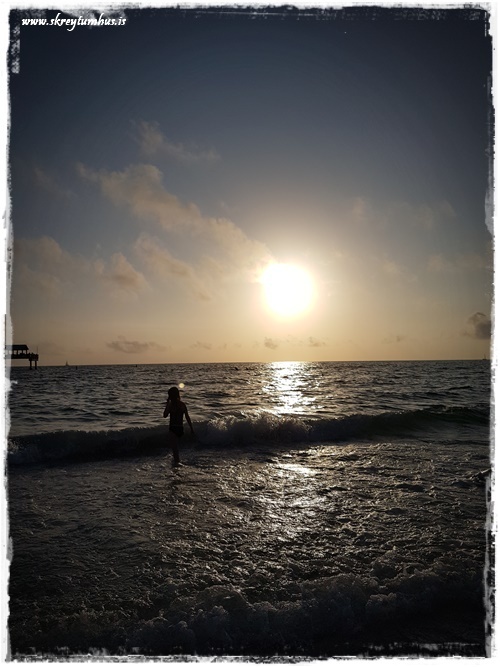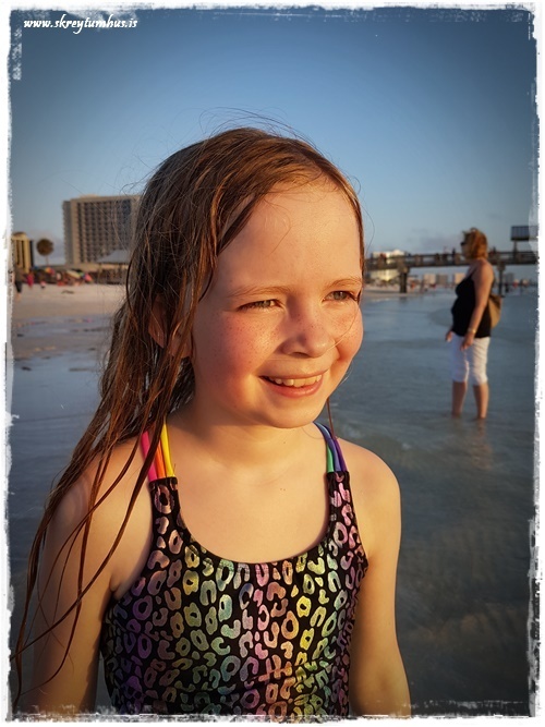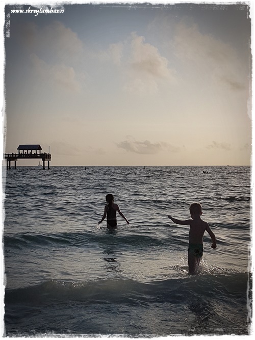 Einn daginn var alveg hellirigning og þrumur og læti.  Við ákváðum að fara í bíltúr, upp á von og óvon og keyra að ströndinni, þrátt fyrir að veðrið væri eflaust ekkert mikið betra þar.  Við keyrðum í rigningunni og horfðum á himininn opnast fyrir ofan okkur.  Eftir rúman klukkustund vorum við komin á Clearwater beach.