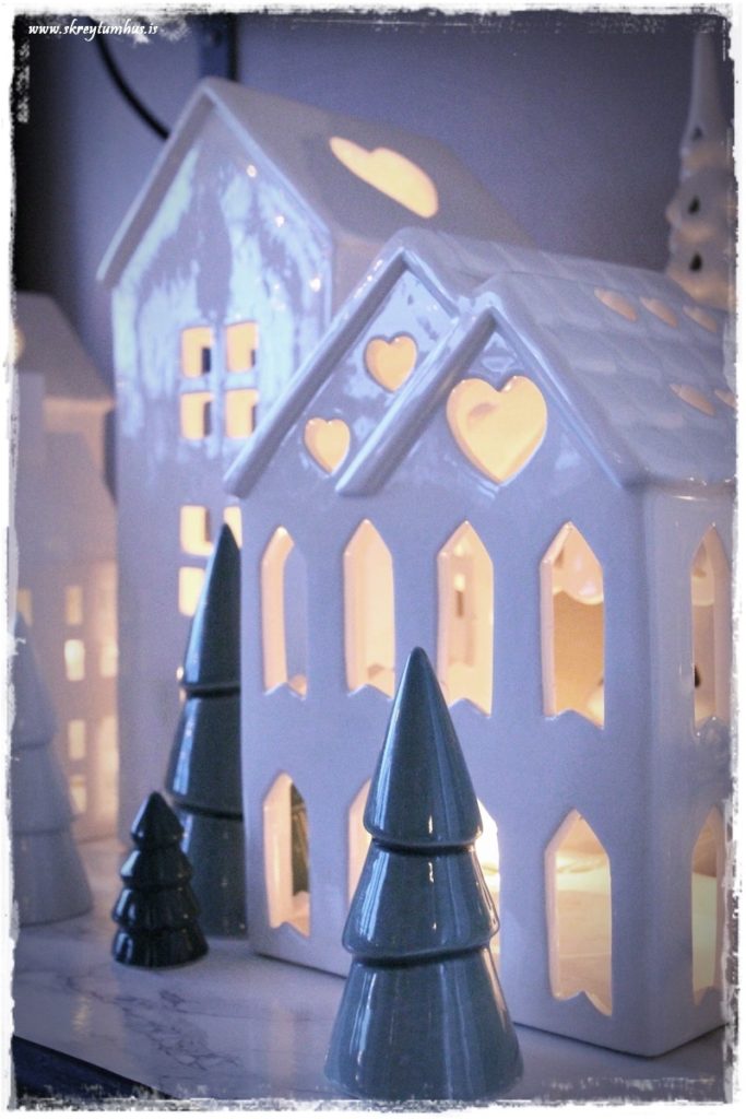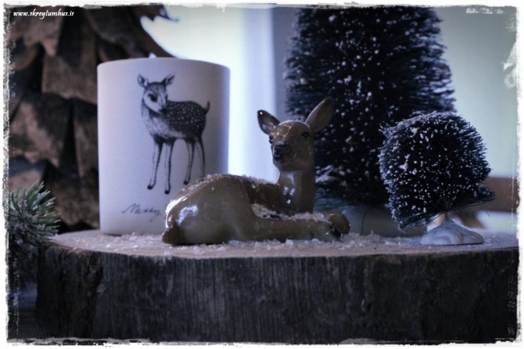Grey bambi litli…vonandi hvílist hann vel þarna sem hann er, og mögulega enn meira í sumar 😉 Og já….þessi hús og tré og skreytingarnar eru pottþétt vetrarskraut 😉