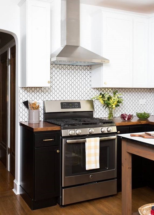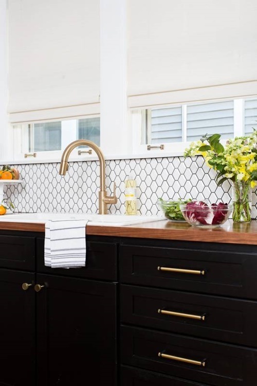 …ég er orðin ferlega skotin í svona svörtum neðri skápum og hvítum efri hluta – kemur ferlega fallega út…
