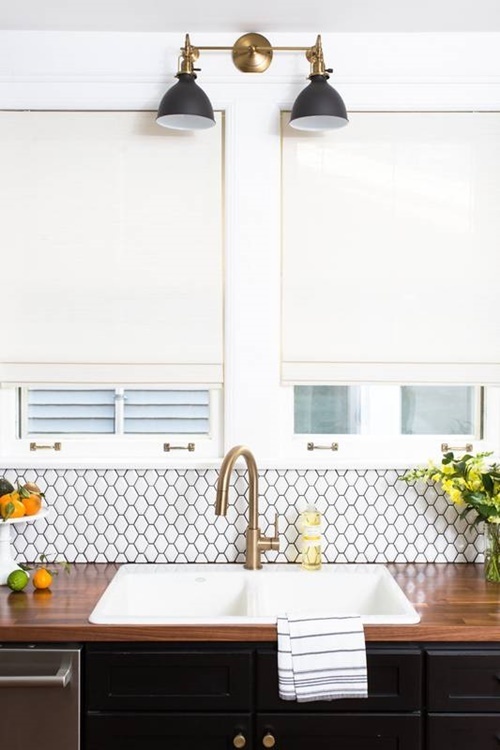 …ofsalega falleg smáatriði, sem gera svo mikið. Hér er brass í ljósunum, í krananum og svo höldurnar á innréttingunni…