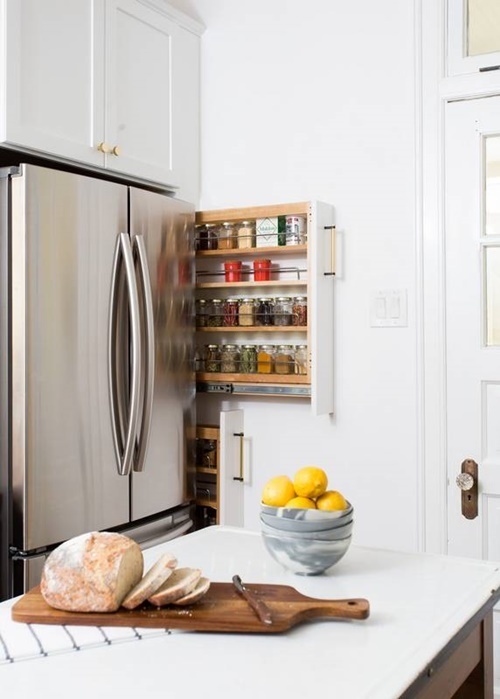 …ótrúlega sniðug nýting á plássi. Reyndar skrítið að geyma kryddin svona langt frá eldavélinni, en engu síður snjöll lausn til að full nýta plássið…