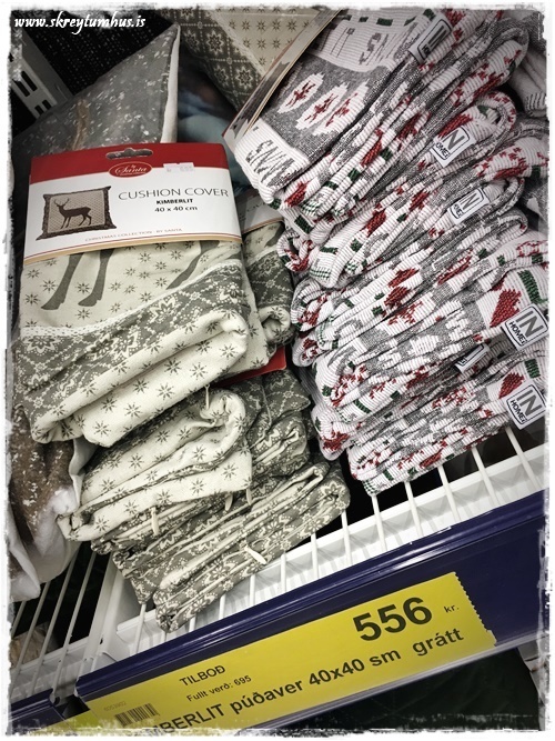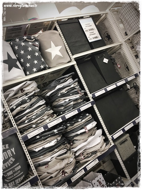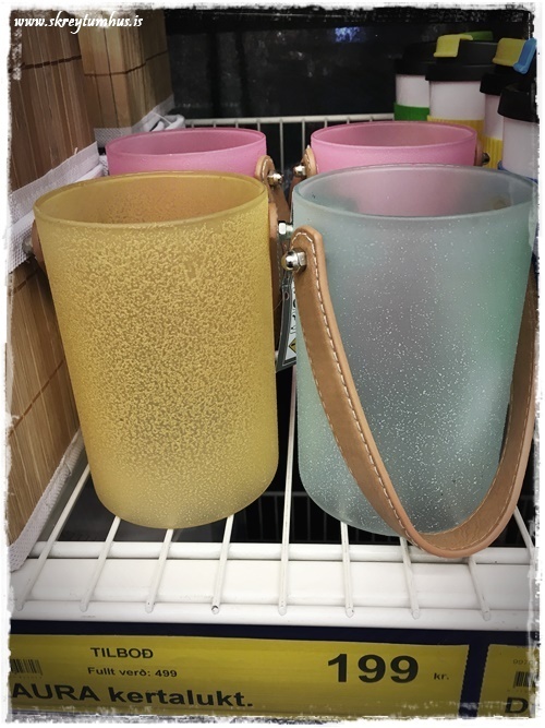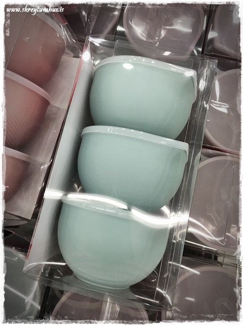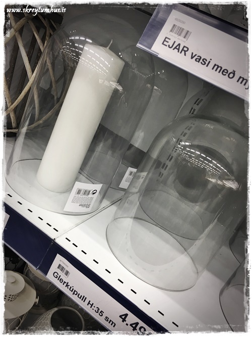 Er nýbúin að kaupa tvo glerkúpla með litaða botninum í Rúmfó á Akureyri og finna þeim hlutverk á heimilinu. Ætlaði líka að kaupa mér púðaver en var bent á að ég ætti nokkur slík í geymslu hjá systur minni. Verð alla vega að skoða þau aðeins áður en ég kaupi ný.