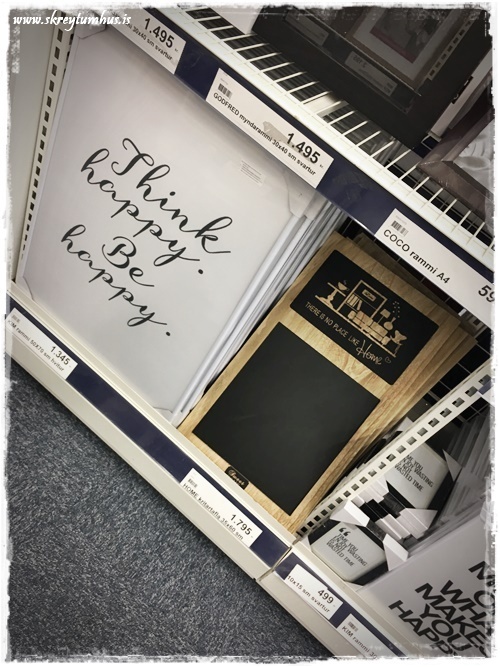 …og þessi Think happy-mynd finnst mér líka alltaf falleg, plús að þetta er sennilegast eins ódýr rammi og hægt er að fá…