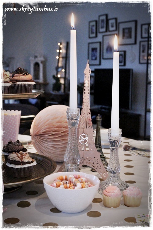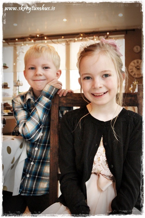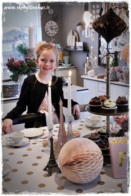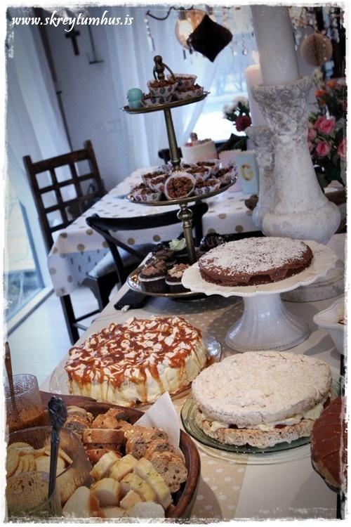 …og glöggir sjá kannski að það voru bara bollar á borðum, en ekki glös, því ég ákvað að vera pínu retró, og bjóða upp á heitt kakó með rjóma fyrir krakkana…