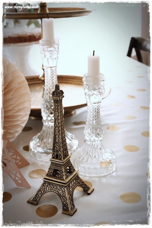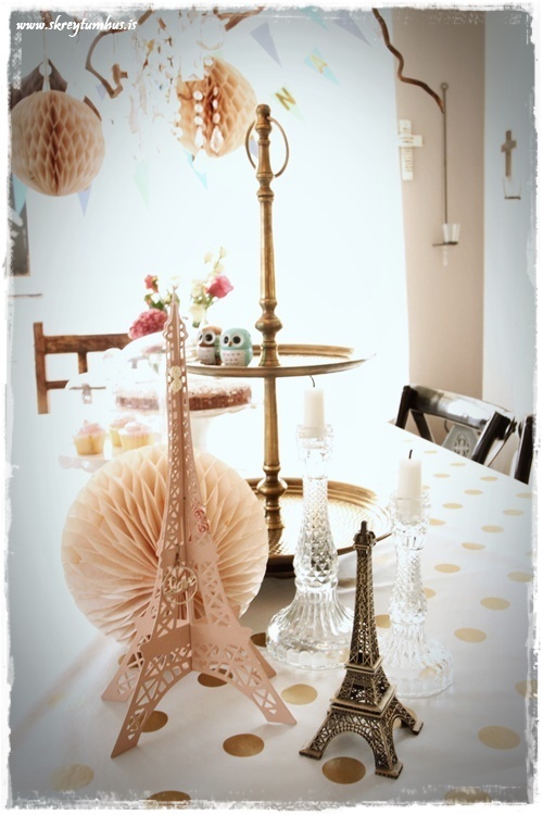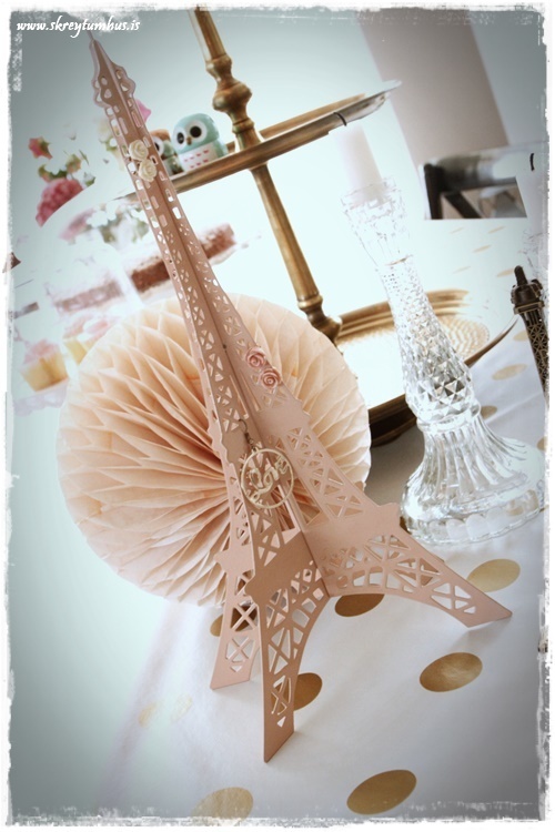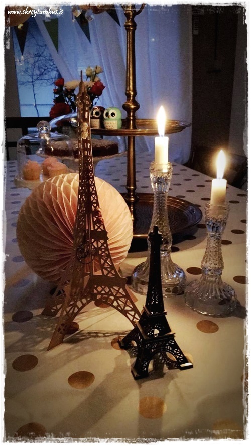 …ég sótti því Eiffel-eyrnalokkaturn sem daman á inni hjá sér, og setti hann á borðið með…