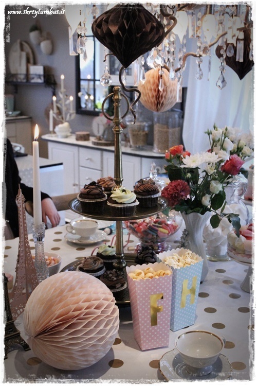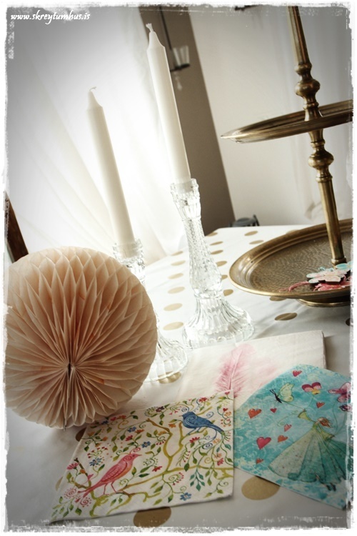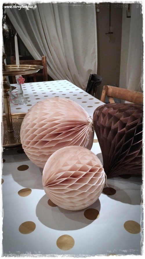 …þegar ég var komin með dúkinn og servétturnar, og fölbleiku pappakúlurnar, þá fannst mér vanta smá meira í bleiku…