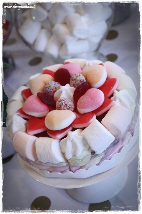 …litla nammi”kakan” kemur úr Hagkaup í Smáralind, og það er líka hægt að fá pizzur og annað slíkt. Þetta fannst krökkunum ferlega spennandi og best að taka það fram, hún kemur svona tilbúin – ekki halda að ég hafi verið að raða saman sykurpúðum 🙂