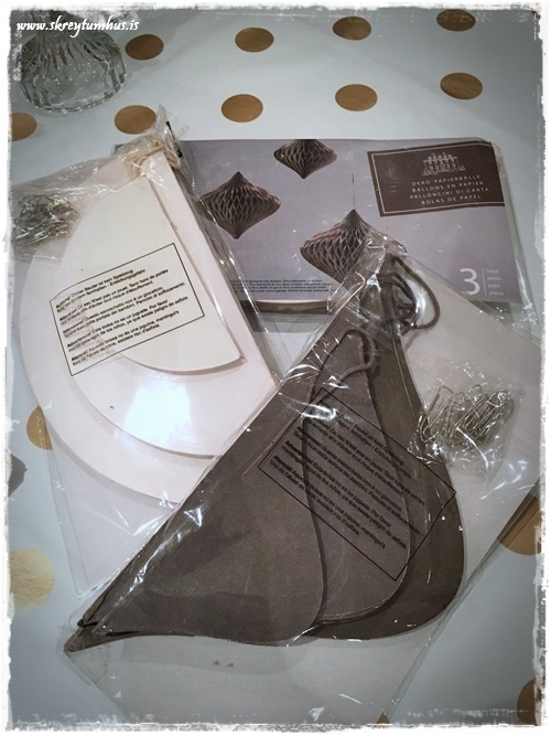 …en ég valdi fölbleikar og dökkgráar. Þetta er ódýr en áhrifaríkt skraut, minnir að þrjár saman hafi kostað 299kr – aftur snilld í fermingar…