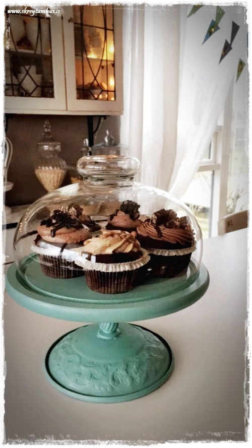 Svo fannst mér æði að eiga nokkrar bollakökur í afgang – en væri ekki gaman að vera alltaf með svona fallega uppstillingu í eldhúsinu…